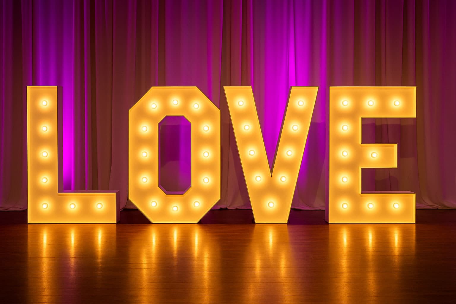 With options like programmable dimming, chase effects, and music-reactive lighting, these marquee letters go beyond décor—they become part of the experience. Whether placed at the entrance, behind the head table, or on the dance floor, City Event Group’s marquee displays are guaranteed to shine in every photo and light up the room—literally.